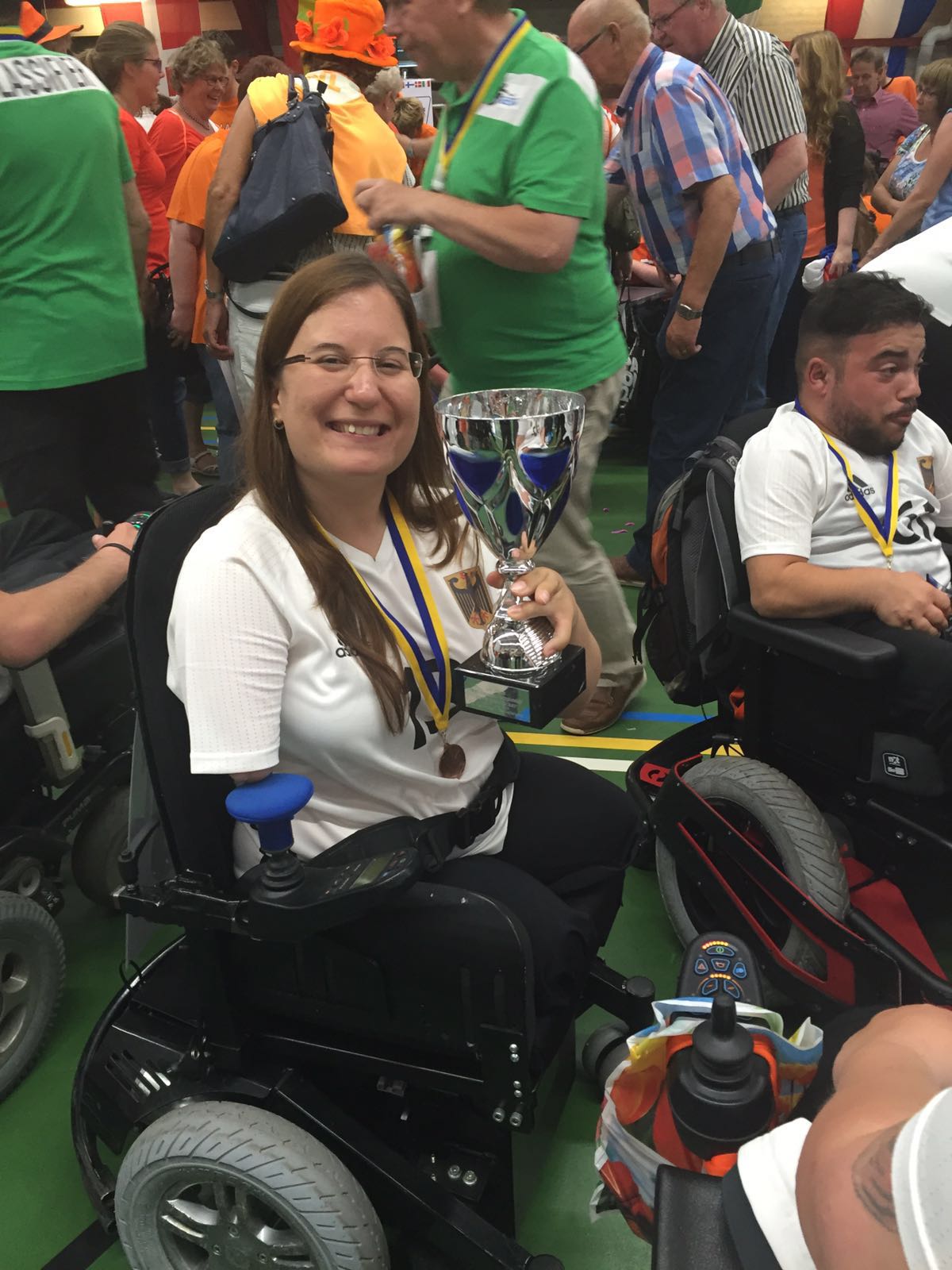 | | Sandra Steiner und Kaan Sisik (rechts) nach der Siegerehrung der Europameisterschaft 2016. Im Spiel um Platz 3 gewann die Deutsche Auswahl gegen Belgien mit . |