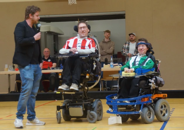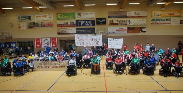 | | Anlässlich des europäischen Protesttags für Gleichstellung von Menschen mit Behinderung fand auch eine öffentlichkeitswirksame Kundgebung aller Spieler und Spielerinnen und des Vereins Würzburg selbstbestimmt leben e.V. statt. Unter dem Motto "Gesellschaftliche Barrieren sind ein Eigentor" wurde an die anwesende Bürgermeisterin Judith Roth-Jörg, an den Politiker Wolfgang Roth und an weitere Entscheidungsträger appelliert, dass gemäß Artikel 3 des Grundgesetzes niemand wegen seiner Behinderung benachteiligt werden darf. |