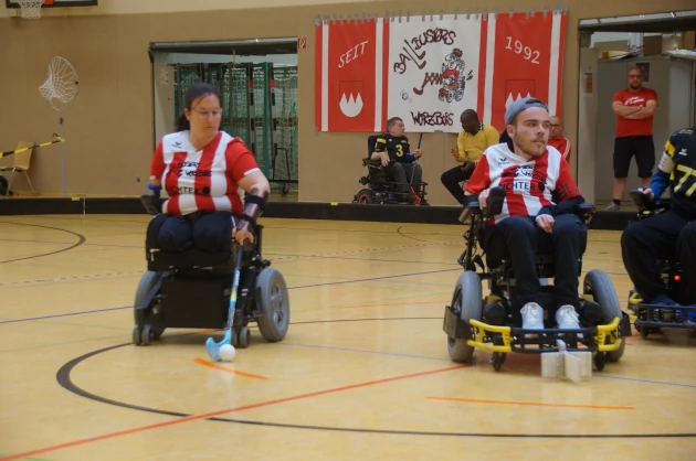 Das letzte Match des Spieltags entwickelte sich zu einem spannenden E-Hockey-Krimi. Gegen die Rocky Rolling Wheels Berlin konnten die Würzburger mehrmals in Führung gehen, gerieten jedoch auch immer wieder in Bedrängnis und kassierten zum Teil raffiniert herausgespielte Tore, sodass sich ein Halbzeitstand von 4:3 ergab. Auch in der zweiten Halbzeit war die Partie umkämpft. Schließlich gelang T-Stick-Spieler Nico Bayerl zur Freude der zahlreichen Fans ein Treffer und es resultierte ein Endstand von 7:5. Somit konnten die Ballbusters vor heimischer Kulisse gutes Powerchair-Hockey zeigen und dürfen sich über sechs Punkte freuen.