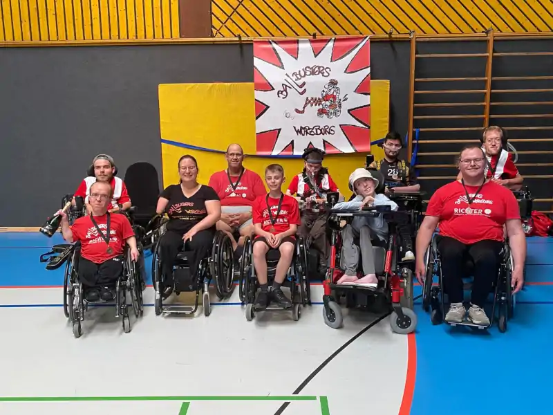 | | Der Kader der Ballbusters in Heidelberg. Hinten von links nach rechts: Nico Bayerl, Stefan Falk, Markus Wahlich, Caner Gönen, Robin Seubert. Vorne von links nach rechts: Vadim Lobanow, Sandra Steiner, Matthias Till, Noah Goltz, Robert Wolfram. |